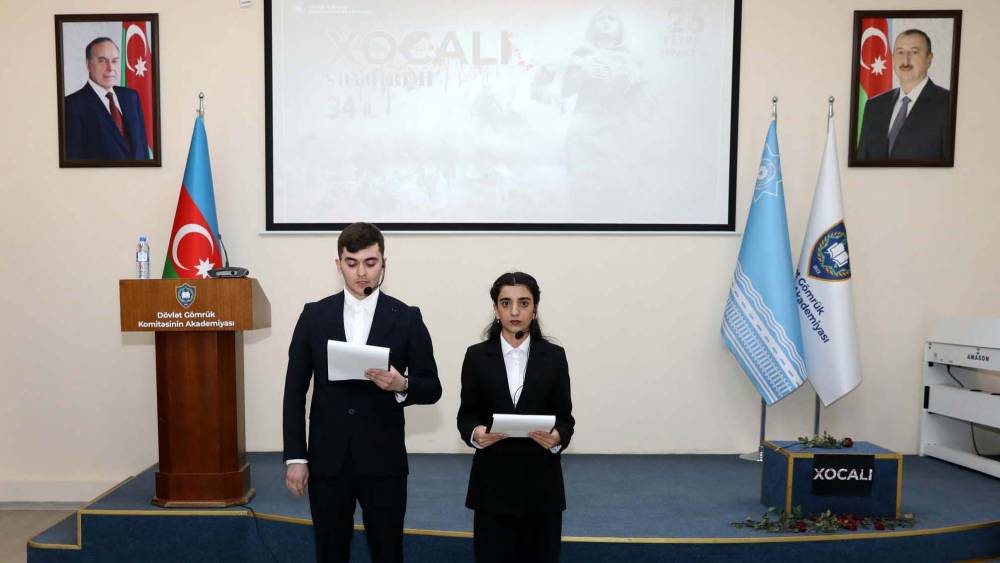Dövlət Gömrük Komitəsinin Akademiyasında (DGKA) Xocalı soyqırımının 34-cü ildönümü münasibətilə anım tədbiri keçirilib. Tədbirdə Akademiyanın rəhbərliyi, əməkdaşları, tələbələri, “Xocalı Soyqırımını Tanıtma” ictimai birliyinin sədri, faciənin şahidi, Xocalı hadisələrinin ictimaiyyətə çatdırılmasında böyük rolu olan jurnalist Şamil Sabiroğlu, birliyin üzvü Aynurə Rüstəmova, Azərbaycan Yazıçılar Birliyinin üzvü, 44gunsavash.az saytının baş redaktoru, yazıçı-publisist Mövsümağa Abasov, faciənin canlı şahidləri, Xocalı sakinləri - Xocalı Rayon İcra Hakimiyyətinin məsul əməkdaşı, müharibə veteranı Xəlil Vəliyev, Xocalı döyüşündə iştirak etmiş Surxay Quliyev, könüllü olaraq Xocalının müdafiəsinə qatılmış və əsirliyin dəhşətlərini yaşamış Hüseynağa Quliyev iştirak ediblər.
