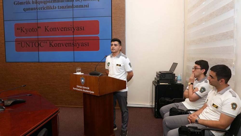 Dövlət Gömrük Komitəsinin Akademiyasında (DGKA) IV kurs tələbələrinin təcrübə hesabatı/layihə işlərinin müdafiəsi davam edir. 2024/2025-ci tədris ilində bakalavriat səviyyəsi üzrə təhsillərini başa vuran “Hüquqşünaslıq” ixtisasının tələbələrinin istehsalat təcrübəsi müddətində onlara gömrük fəaliyyəti ilə bağlı təyin edilmiş layihə işlərinin müdafiəsi keçirilib.