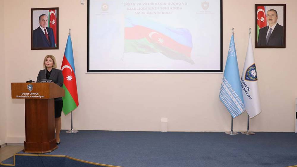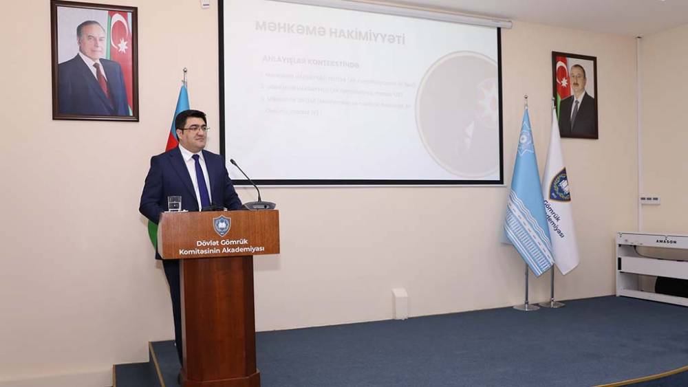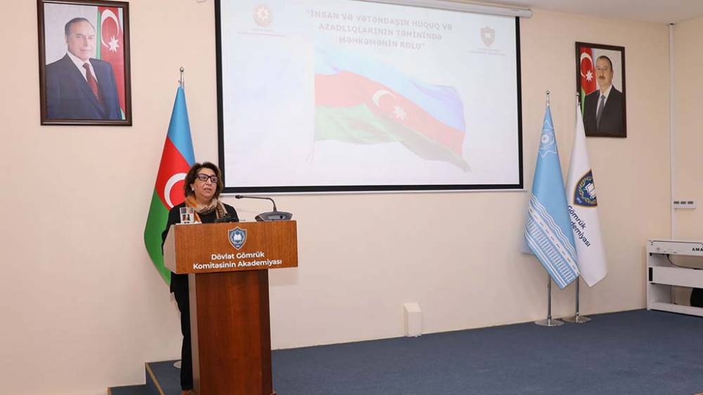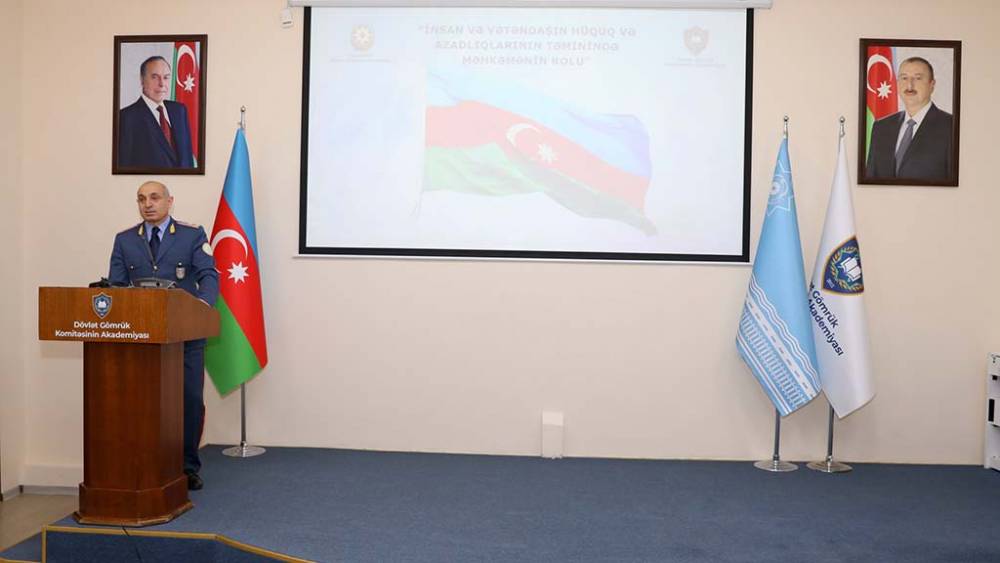 “Konstitusiya və Suverenlik İli” çərçivəsində Azərbaycan Respublikası Binəqədi Rayon Məhkəməsi və Dövlət Gömrük Komitəsinin Akademiyasının (DGKA) birgə təşkilatçılığı ilə “İnsan və vətəndaşın hüquq və azadlıqlarının təminində məhkəmənin rolu” adlı tədbir keçirilib. Tədbirdə Akademiyanın rəhbərliyi, müəllimləri, tələbələri, Binəqədi Rayon məhkəməsinin sədri və hakimləri iştirak ediblər.