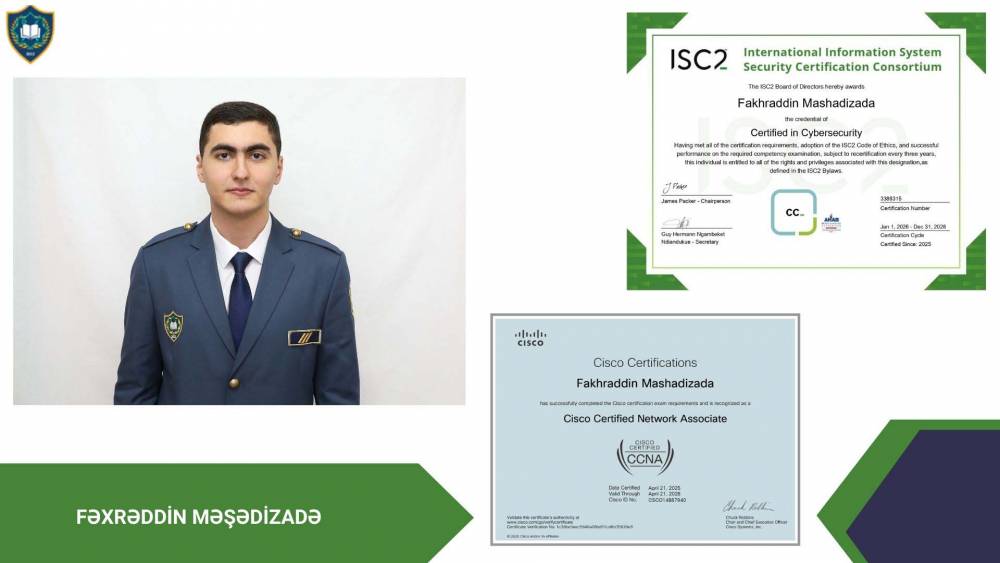 Qeyd edək ki, bu beynəlxalq sertifikatlar tələbələrin kibertəhlükəsizlik və şəbəkə təhlükəsizliyi sahəsində praktik bilik və bacarıqlarını rəsmi şəkildə təsdiqləyir. Eyni zamanda, onların bilik və bacarıqlarının beynəlxalq peşəkar mühitdə rəsmi şəkildə tanınmasına xidmət edir.
