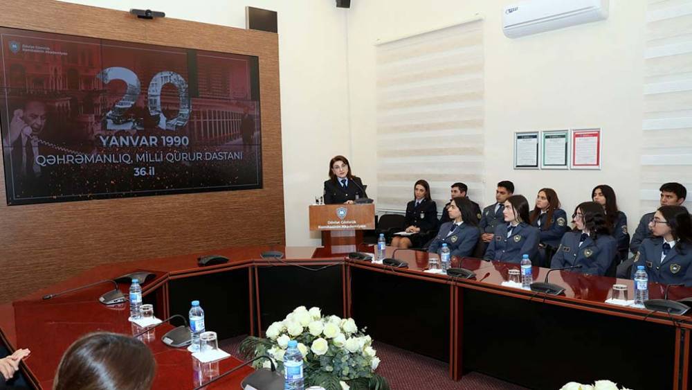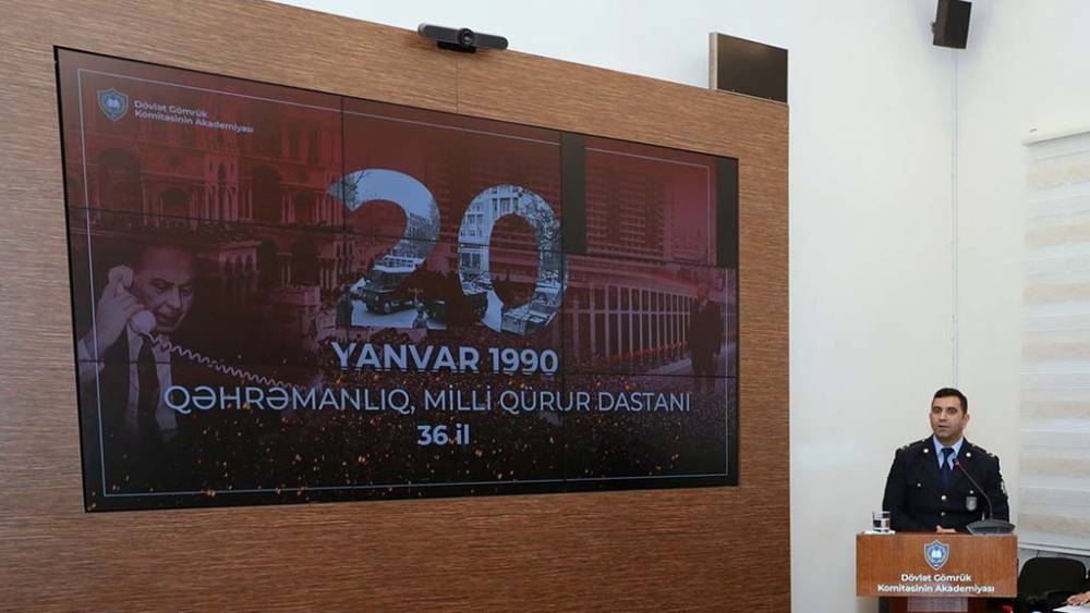 Tədbirdə açılış nitqi ilə çıxış edən Akademiyanın rəisi, gömrük xidməti general-mayoru Qulu Novruzov 36 il əvvəl Bakıda törədilən bu faciənin tarixindən danışaraq 20 Yanvar faciəsinin Azərbaycanın müstəqillik tarixində şərəf və qürur mənbəyi olduğunu bildirib, bu hadisələrə əsl siyasi-hüquqi qiymətin Ümummilli Lider Heydər Əliyevin hakimiyyətə qayıdışından sonra verildiyini qeyd edib. O, Müzəffər Ali Baş Komandan İlham Əliyevin rəhbərliyi ilə qazanılan 44 günlük Vətən müharibəsi Zəfərinin 20 Yanvar şəhidləri də daxil olmaqla bütün şəhidlərimizin qanının yerdə qalmadığını nümayiş etdirdiyini vurğulayıb.