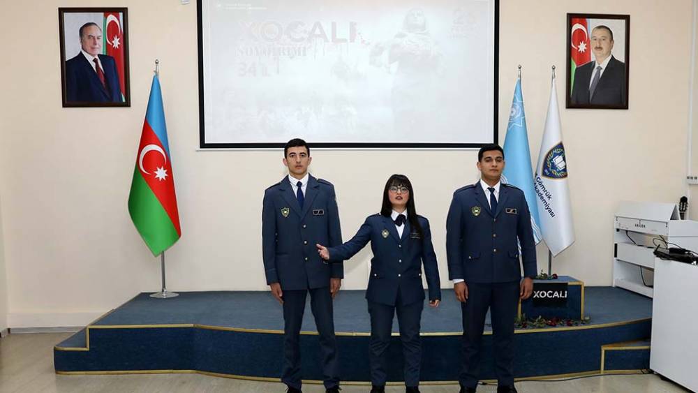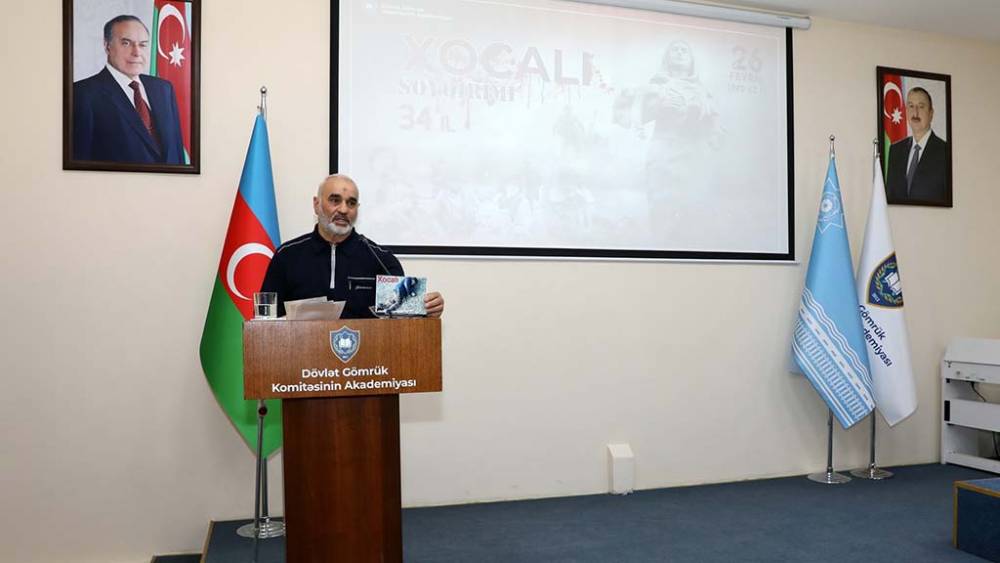 Dövlət Gömrük Komitəsinin Akademiyasında (DGKA) Xocalı soyqırımının 34-cü ildönümü münasibətilə anım tədbiri keçirilib. Tədbirdə Akademiyanın rəhbərliyi, əməkdaşları, tələbələri, “Xocalı Soyqırımını Tanıtma” ictimai birliyinin sədri, faciənin şahidi, Xocalı hadisələrinin ictimaiyyətə çatdırılmasında böyük rolu olan jurnalist Şamil Sabiroğlu, birliyin üzvü Aynurə Rüstəmova, Azərbaycan Yazıçılar Birliyinin üzvü, 44gunsavash.az saytının baş redaktoru, yazıçı-publisist Mövsümağa Abasov, faciənin canlı şahidləri, Xocalı sakinləri - Xocalı Rayon İcra Hakimiyyətinin məsul əməkdaşı, müharibə veteranı Xəlil Vəliyev, Xocalı döyüşündə iştirak etmiş Surxay Quliyev, könüllü olaraq Xocalının müdafiəsinə qatılmış və əsirliyin dəhşətlərini yaşamış Hüseynağa Quliyev iştirak ediblər.