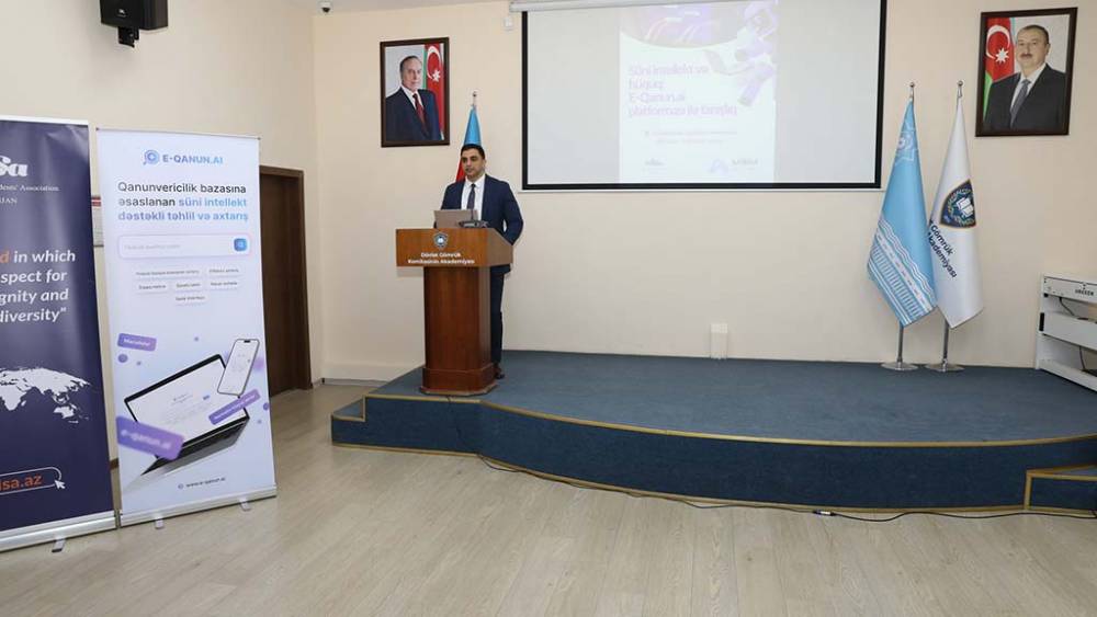 Milli Süni İntellekt Mərkəzinin əməkdaşı İbrahim Süleymanov isə çıxış edərək E-qanun.ai platformasının işləmə mexanizmini izah edib və saytdan birbaşa axtarış aparmağın və nəticələri təhlil etməyin yollarını göstərib.
